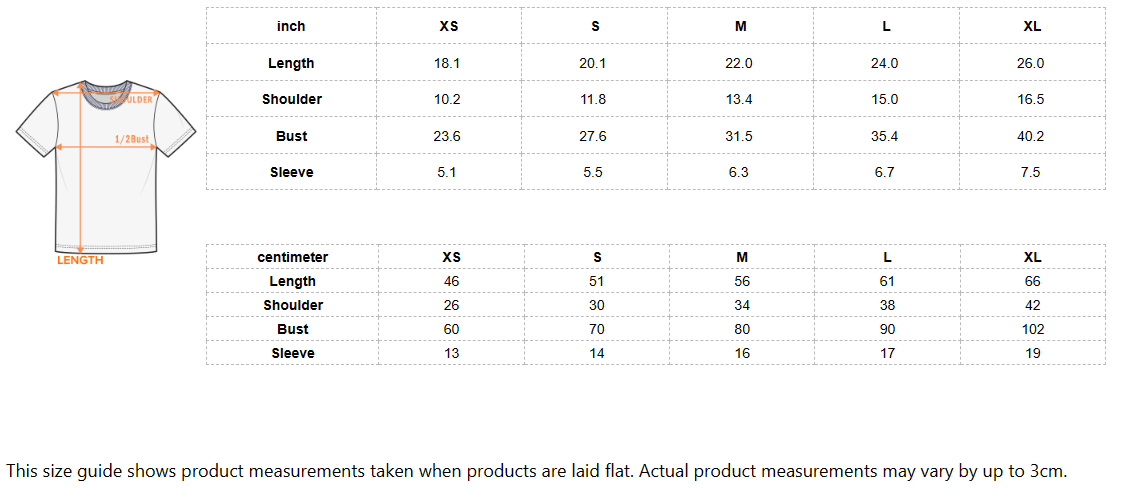 This size guide shows product measurements taken when products are laid flat. Actual product measurements may vary by up to 3cm.